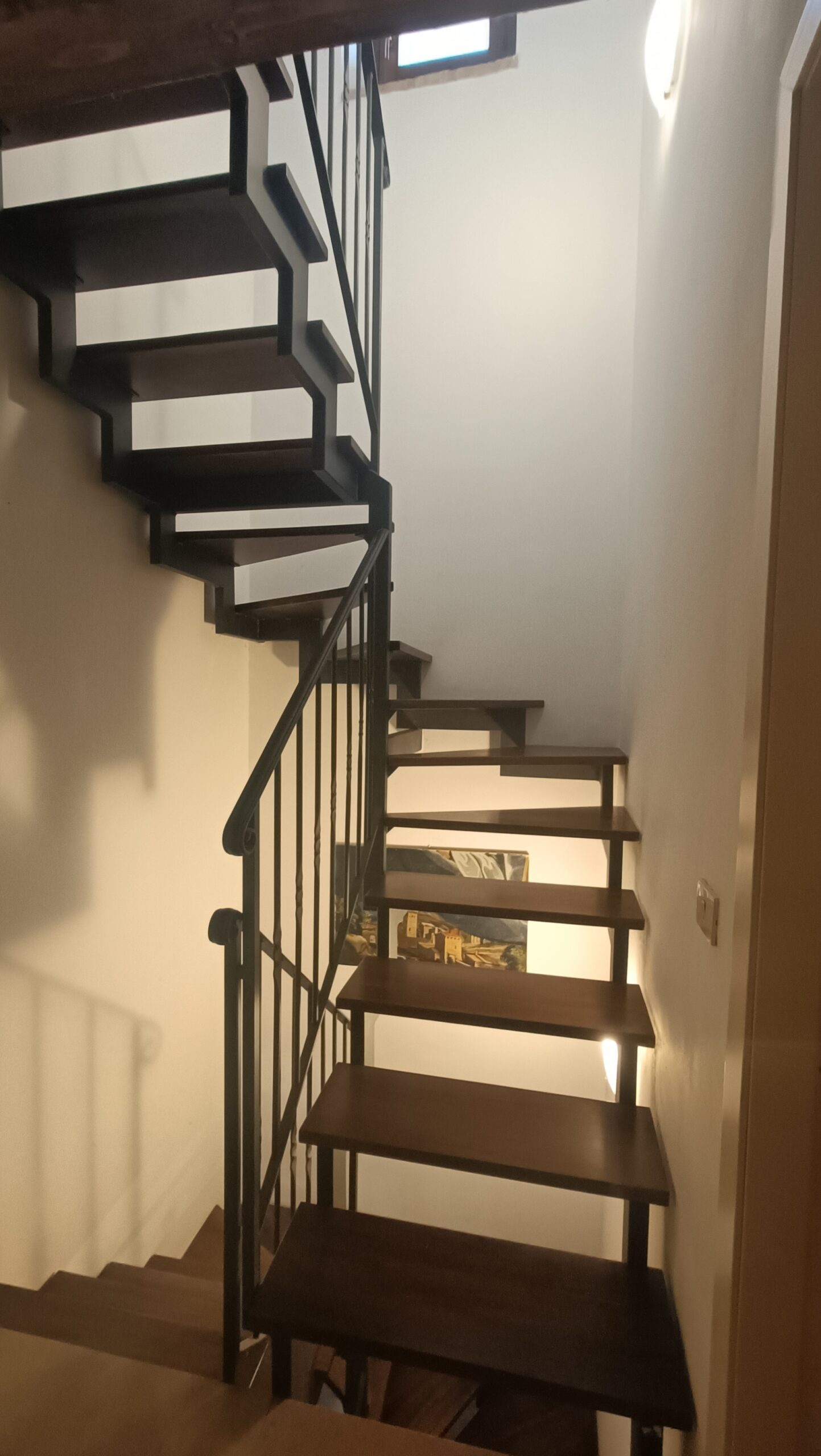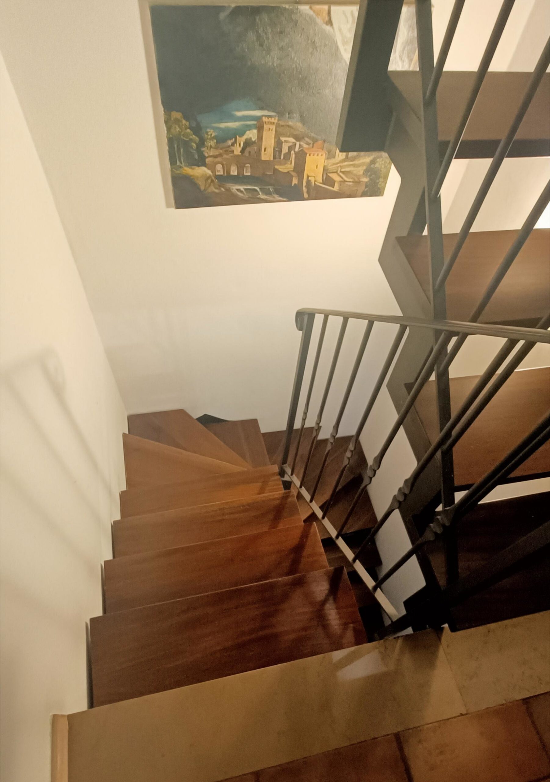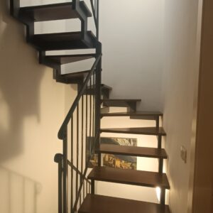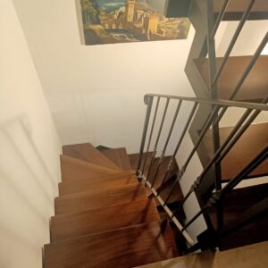 La metratura è distribuita su 3 piani di livello ottimamente collegati grazie a una scala a chiocciola in legno.