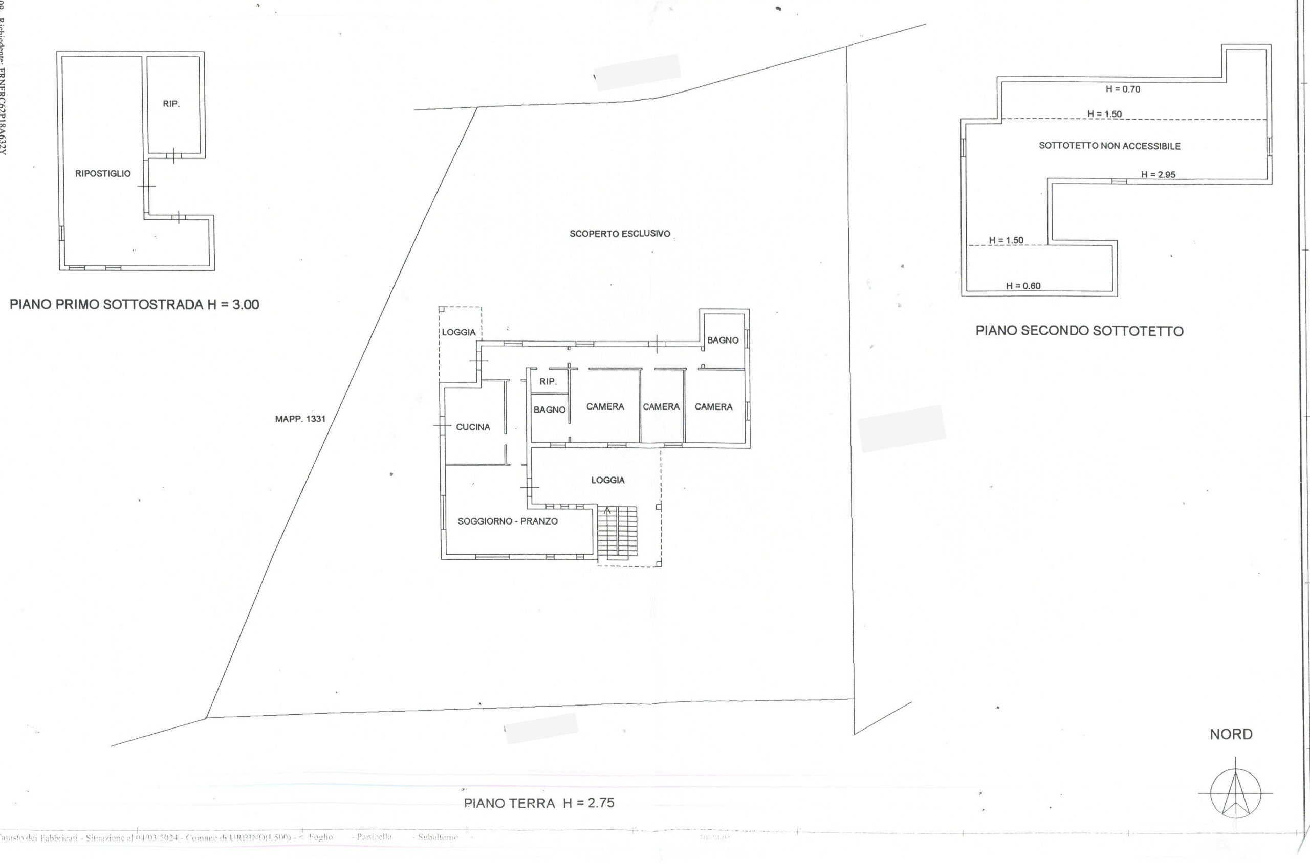 È disponibile anche una soffitta ad uso ripostiglio con un’altezza media di 1,60 mt.